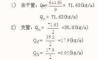 管網內剩余量:△W2=0(㎏)(規范3.3.14條之5:均衡管網和只含一個封閉空間的非均衡管網,其管網內的滅火劑剩余量均可不計)。