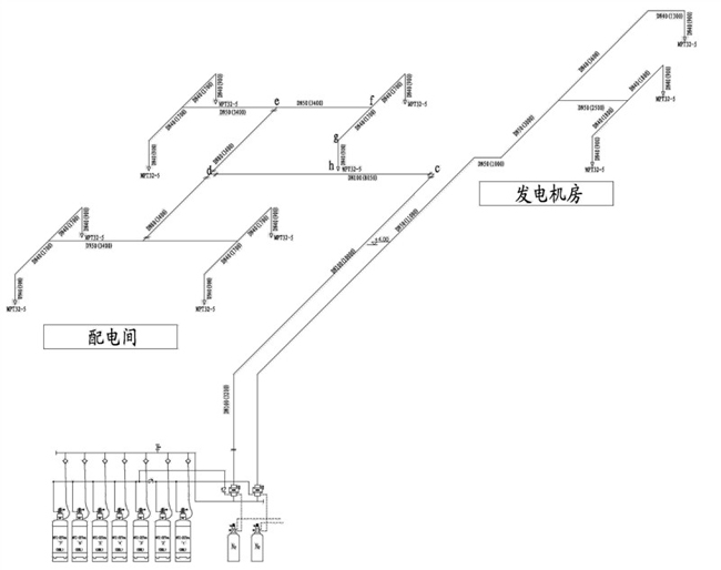 采用七氟丙烷氣體滅火組合分配系統;系統設計技術參數及詳細計算過程見《設計計算書》。
