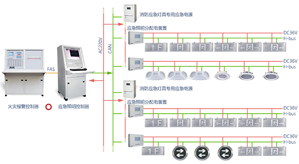 1)集中控制型消防應(yīng)急照明和疏散指示系統(tǒng),應(yīng)由火災(zāi)報警控制器或消防聯(lián)動控制器啟動應(yīng)急照明控制器實現(xiàn)。