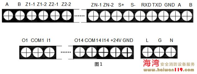 A、B:連接火災顯示盤的通訊總線端子;