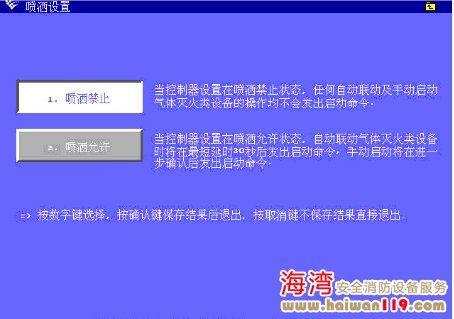 在氣體噴灑允許狀態,氣體滅火設備才可以被手動啟動和自動聯動。否則啟動氣體滅火設備的聯動條件成立后,氣體滅火設備不會被啟動;手動啟動氣體滅火設備時,沒有響應。